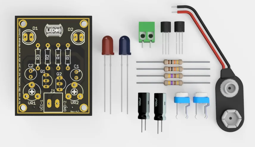 Lihtne komplekt algajale elektroonikakomponentide jootmise õppimiseks koos põhjaliku samm-sammulise juhendiga.